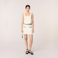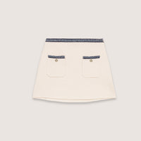 Embellished with a braided trim and belt, this short knitted skirt is feminine and elegant, inspired by nautical chic. The patch pockets with buttons brighten up the piece, ideal for any occasion.Pair with a top, bag and ballet flats for a smart casual look.