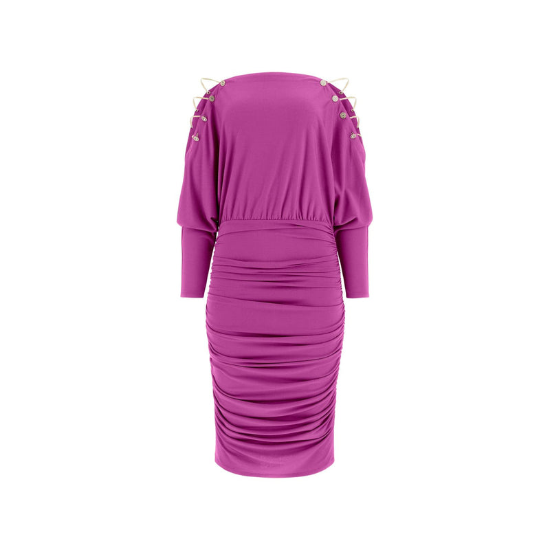 SHANGHAI TANG High Neck Diagonal Cut Long-sleeve Dress