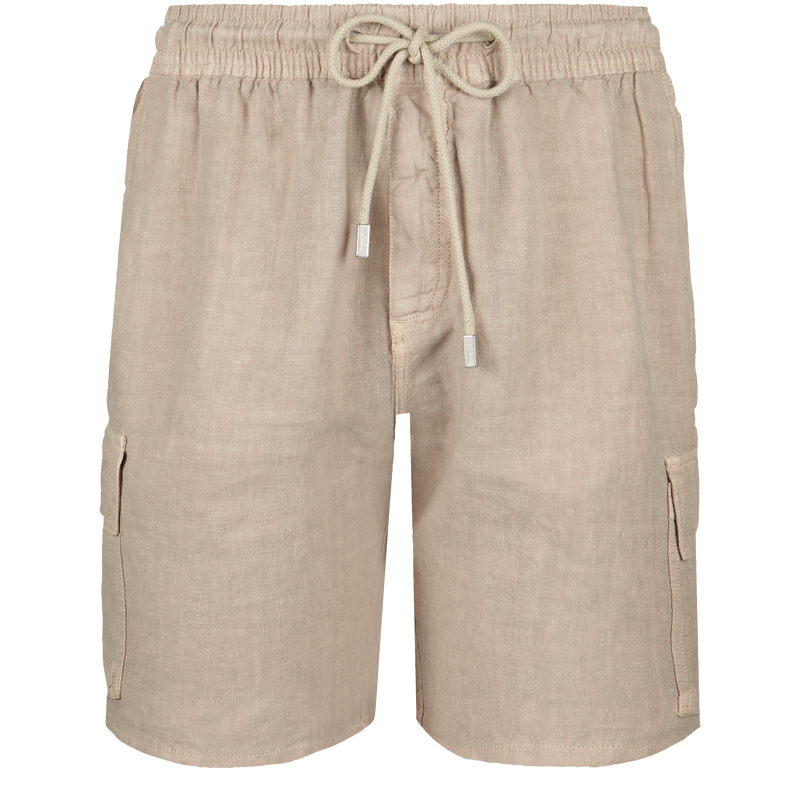 Men Linen Bermuda Shorts with Cargo Pockets