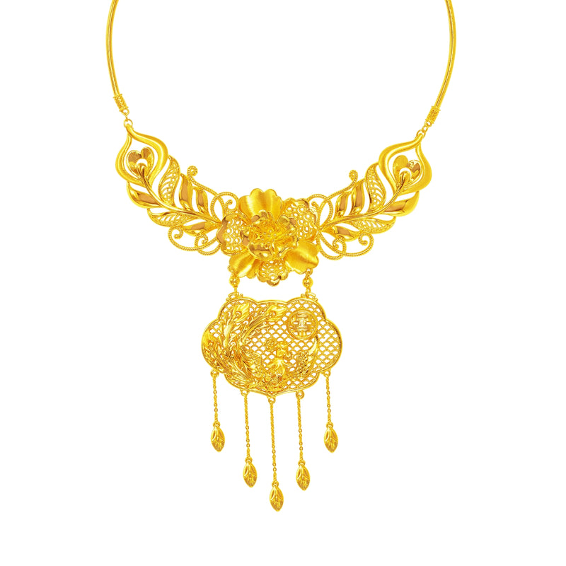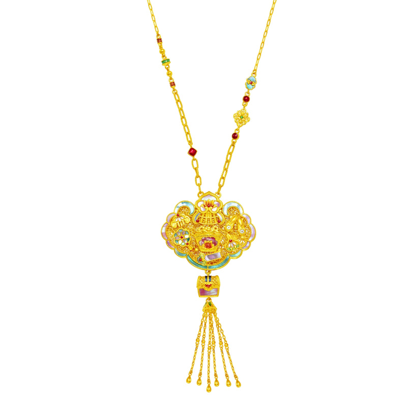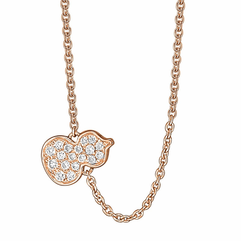Yu Yi Medium Necklace in 18K Rose Gold Set with Jade and Diamonds