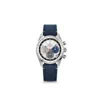 The CHRONOMASTER Original Boutique Edition is crafted in a 38mm steel case in the same proportions as the A386, paired with a blue dial with silver counters and a blue leather strap. Powered by the El Primero 3600 automatic high-frequency chronograph movement with 1/10th of a second chronograph function and a power reserve of 60 hours.
