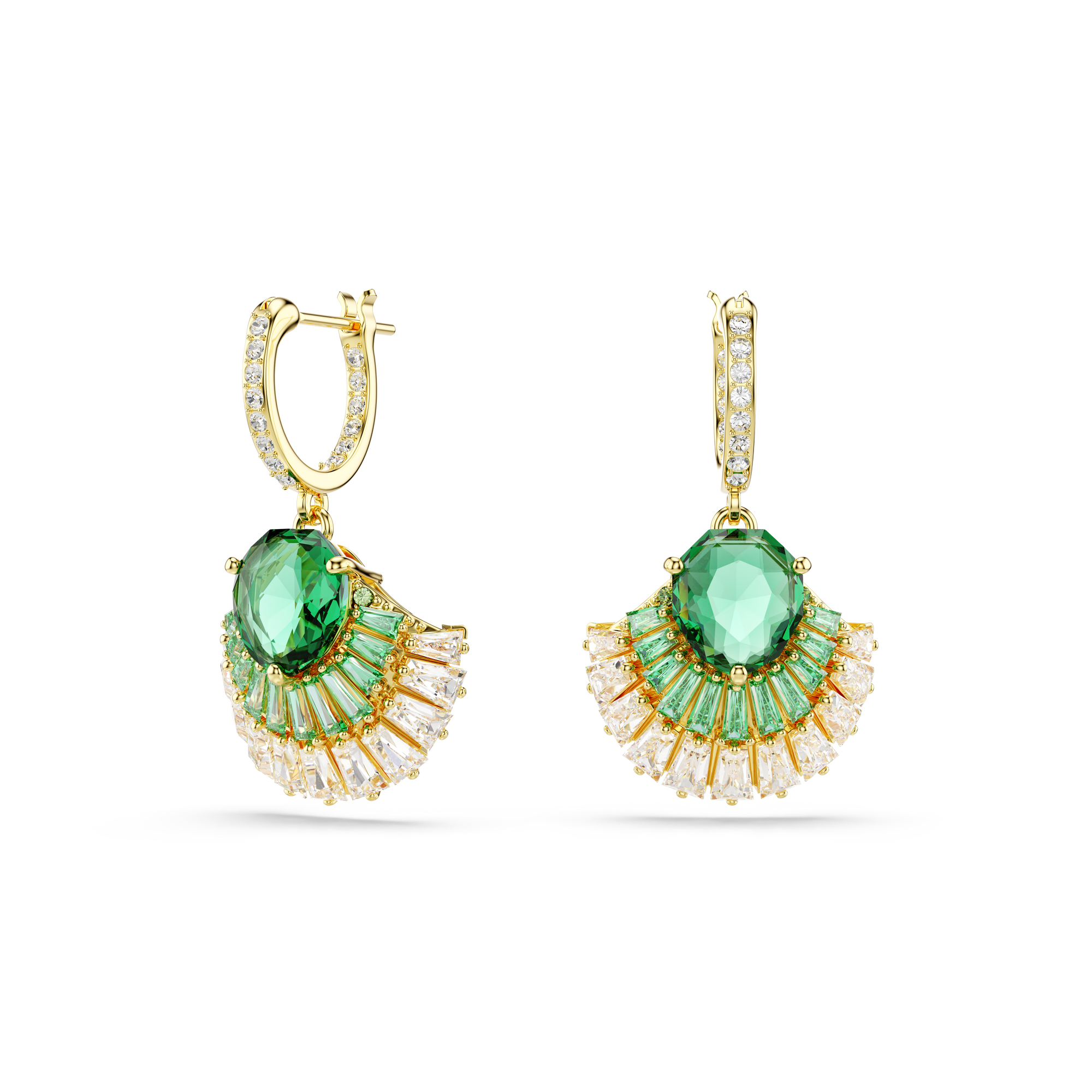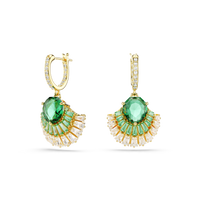 Dip into the calming spirit of the ocean with these graceful Idyllia earrings. Connected to mini hoops adorned with clear crystals, each shell design is gold-tone plated and embellished with an array of green and clear Swarovski Zirconia, along with a large green crystal at the center. Gift this nature-inspired jewelry to someone you love to celebrate the month of Ramadan.