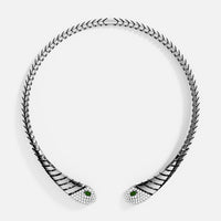 This choker is made with sterling silver and microset with white and green cubic zirconia.