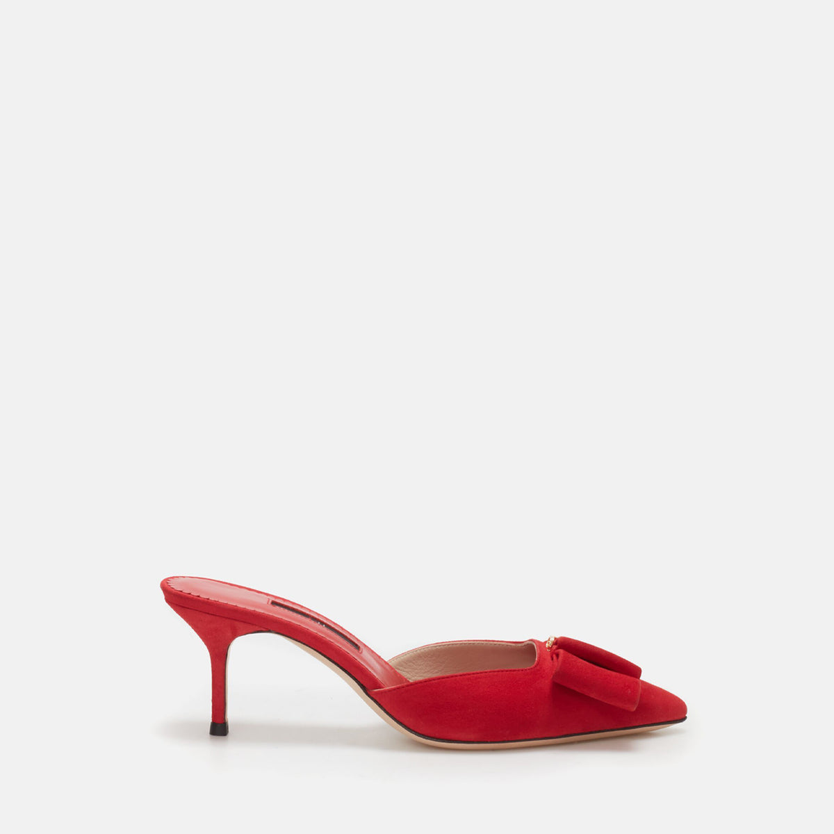 Suede slingback pumps detailed with a matching bow and the distinctive gold plated Insignia slider.