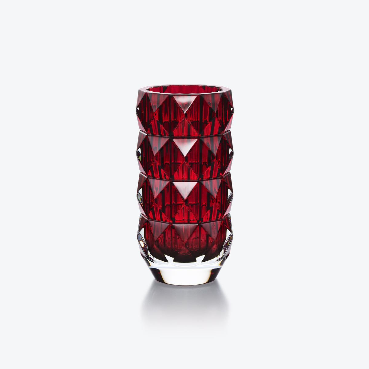 The Louxor round vase, inspired by ancient Egypt and its architecture, is adorned in red, Baccarat's signature color. Combining diamond cuts, bevels, and vertical lines, Louxor creates the magic of endless pyramids of light, transforming every bouquet into an exceptional composition. Its rounded curves, carved with geometric patterns, come alive with captivating reflections. Bold and resolutely modern, this true crystal sculpture captivates the eye, whether filled with flowers or displayed on its own.