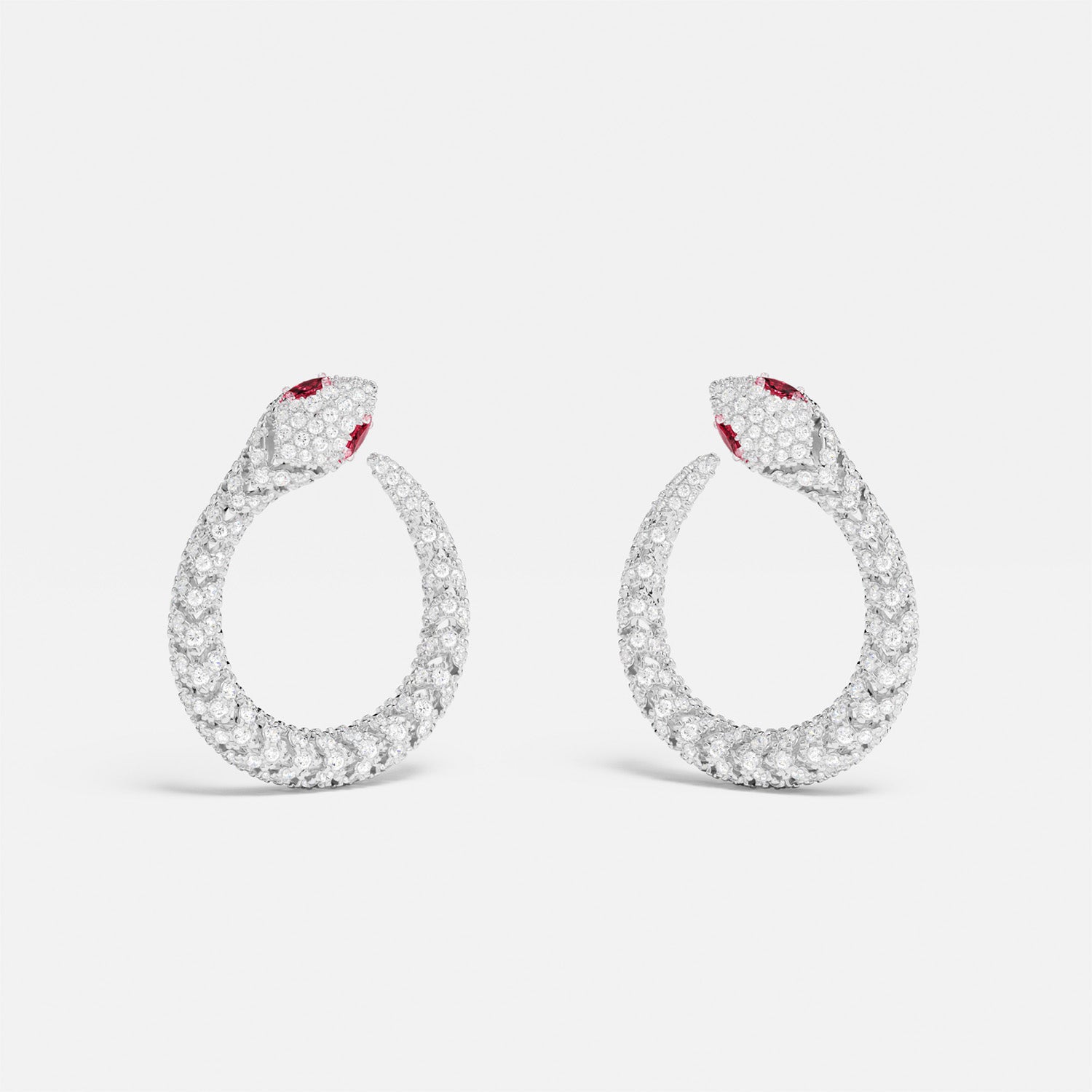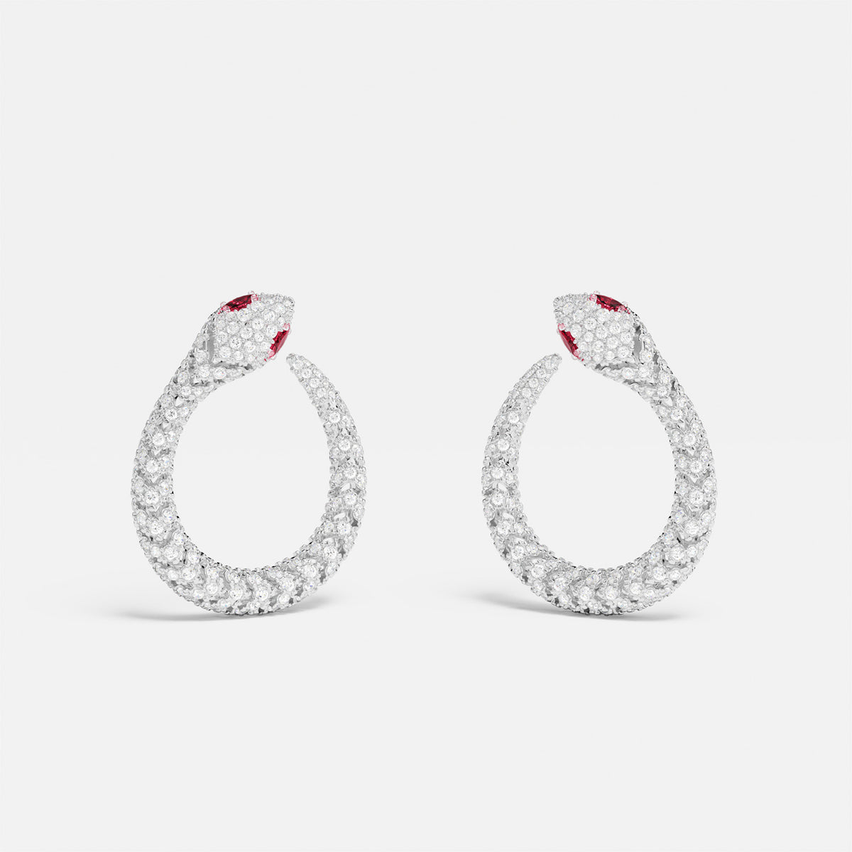 These earrings are handcrafted from sterling silver and microset with white and red cubic zirconia.