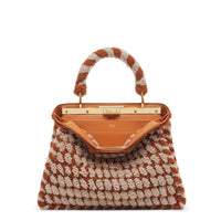 Medium Peekaboo ISeeU bag made of soft, brown and grey sheepskin meticulously braided by hand. Decorated with the iconic twist lock on both sides.