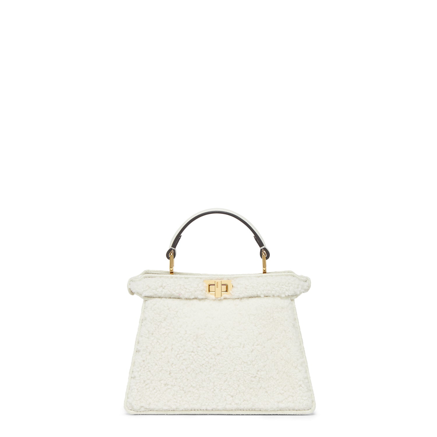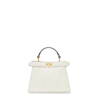 Iconic Peekaboo ISeeU bag in an ideal, compact size. Made of soft, white sheepskin and embellished with the classic twist lock on both sides.