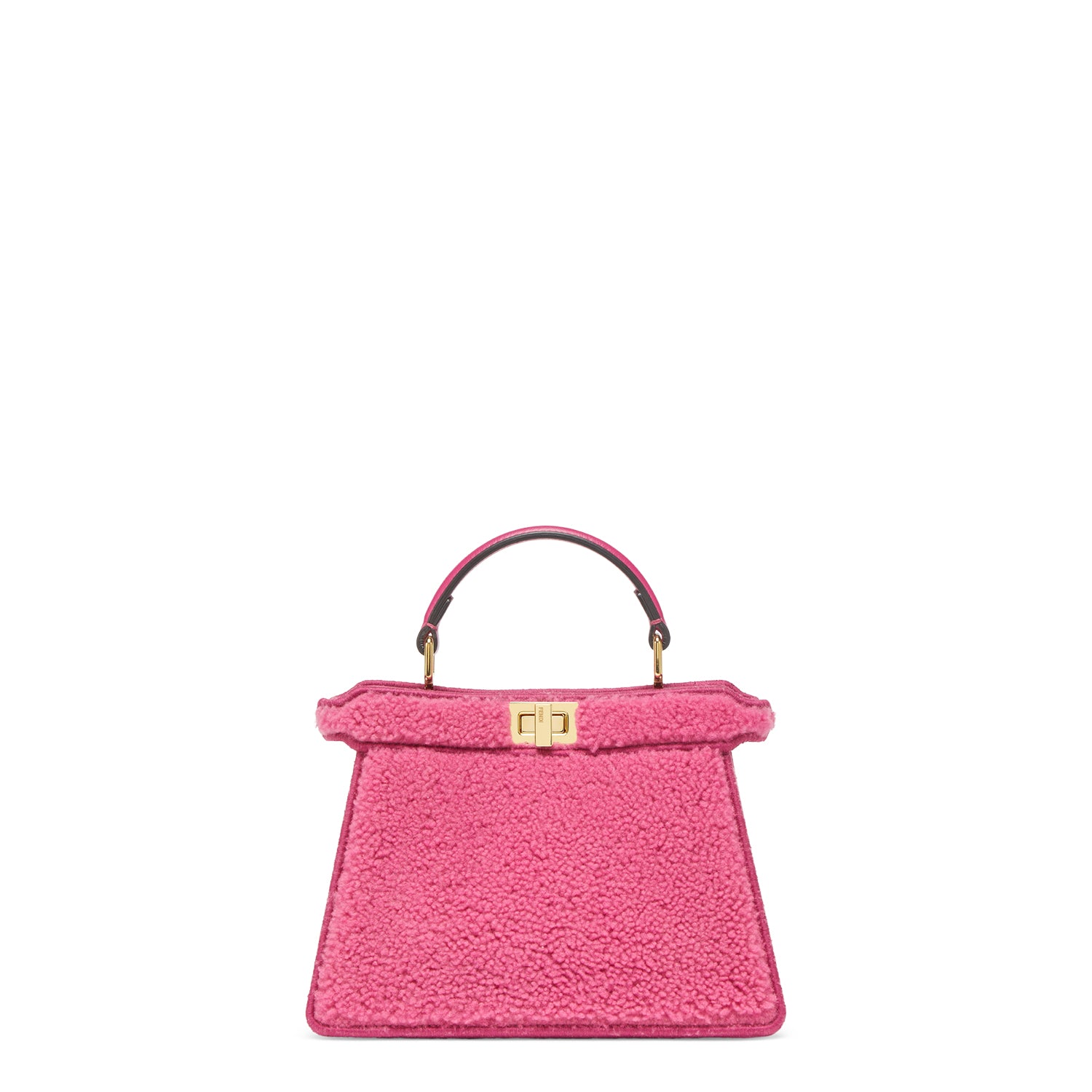 Iconic Peekaboo ISeeU bag in an ideal, compact size. Made of soft, fuchsia sheepskin and embellished with the classic twist lock on both sides.