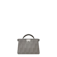 Iconic Peekaboo ISeeU XCross bag made of dove grey Fendi Shadow leather with a striped texture FF motif.