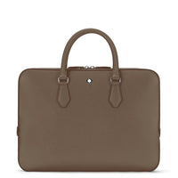 Introducing the Sartorial thin document case, a sleek and sophisticated companion for the modern professional. Crafted with luxurious saffiano-printed leather, this case effortlessly combines style and functionality. It features a padded main compartment designed to protect laptops up to 13 in size during transportation. The interior includes a black fabric lining, a zipped pocket, two open pockets, and two dedicated pockets for writing instruments, providing ample organization options for your essentials. The standout feature is the satellite system, allowing easy attachment to a trolley for convenient travel.