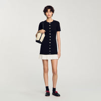 Short-sleeved knit dress featuring a round neck, press-stud placket and a contrasting ruffled flounce on the bottom of the skirt.