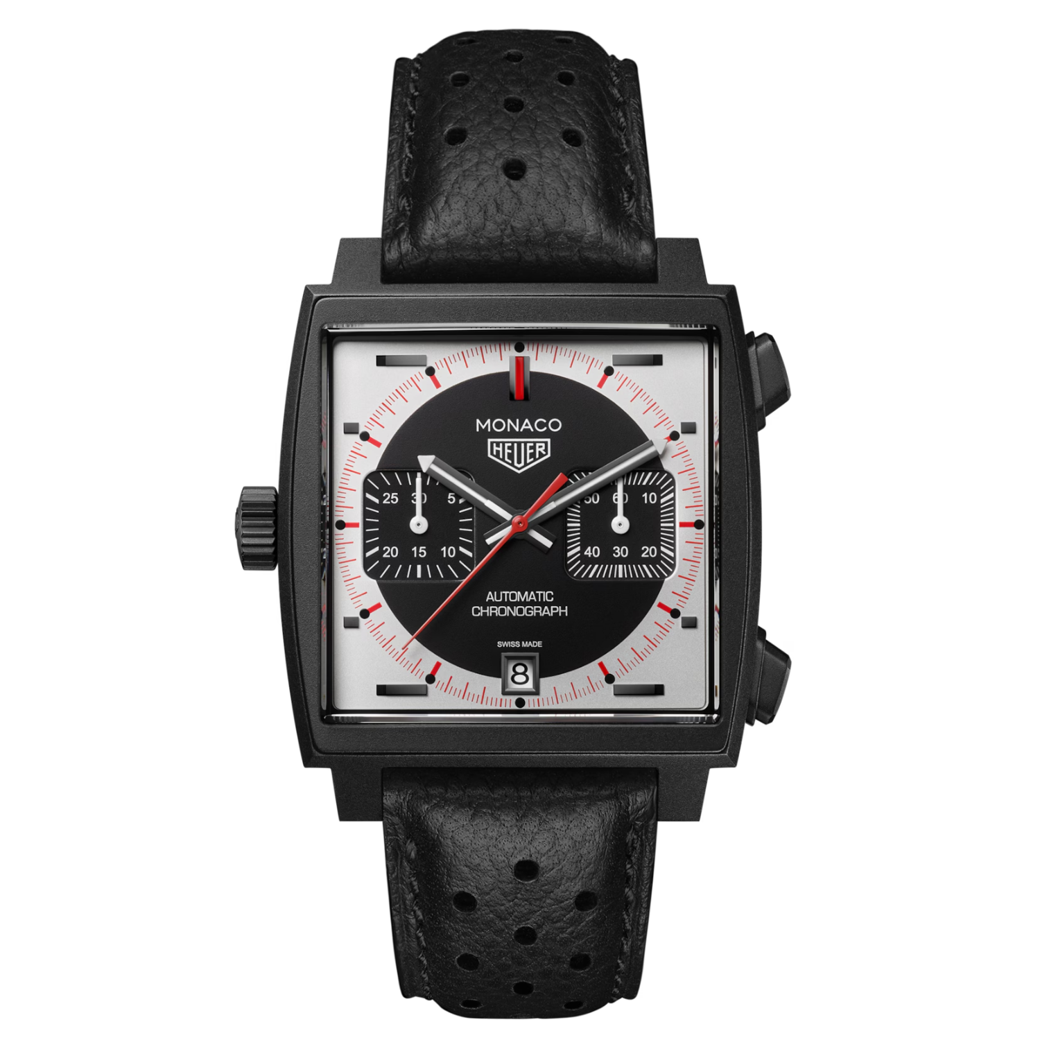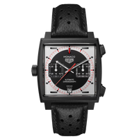 Reviving the aesthetics of original TAG Heuer stopwatches from the 1960s and ‘70s, the TAG Heuer Monaco Chronograph Stopwatch brings the thrill of the racetrack to the wrist. A tribute to TAG Heuer’s rich timekeeping heritage, this limited-edition chronograph in black DLC-coated titanium pairs the iconic Calibre 11 with a resolutely vintage-inspired design.