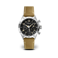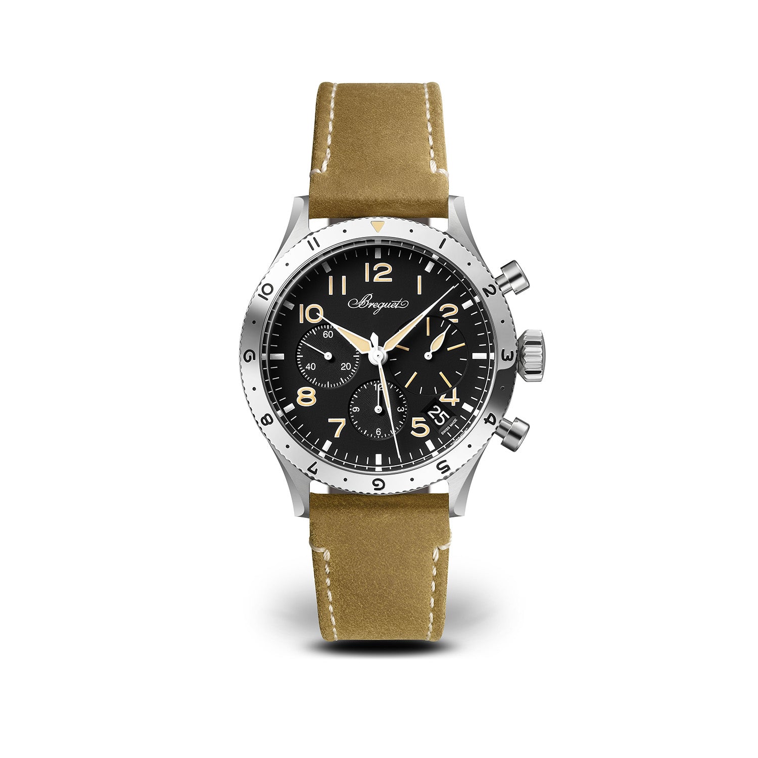 Type XX flyback chronograph in steel. Self-winding movement with date and subdial for the seconds. Balance spring in silicon. 15-minute and 12-hour counters. Bidirectional graduated rotating bezel.
